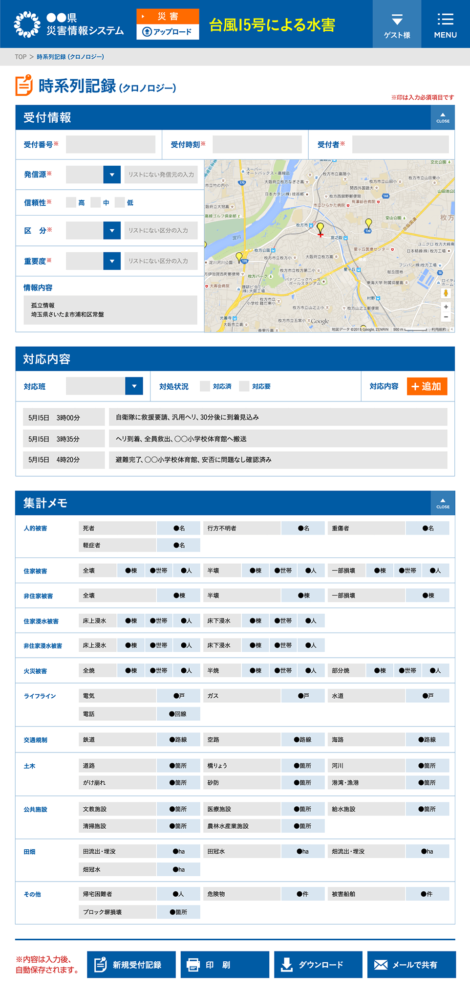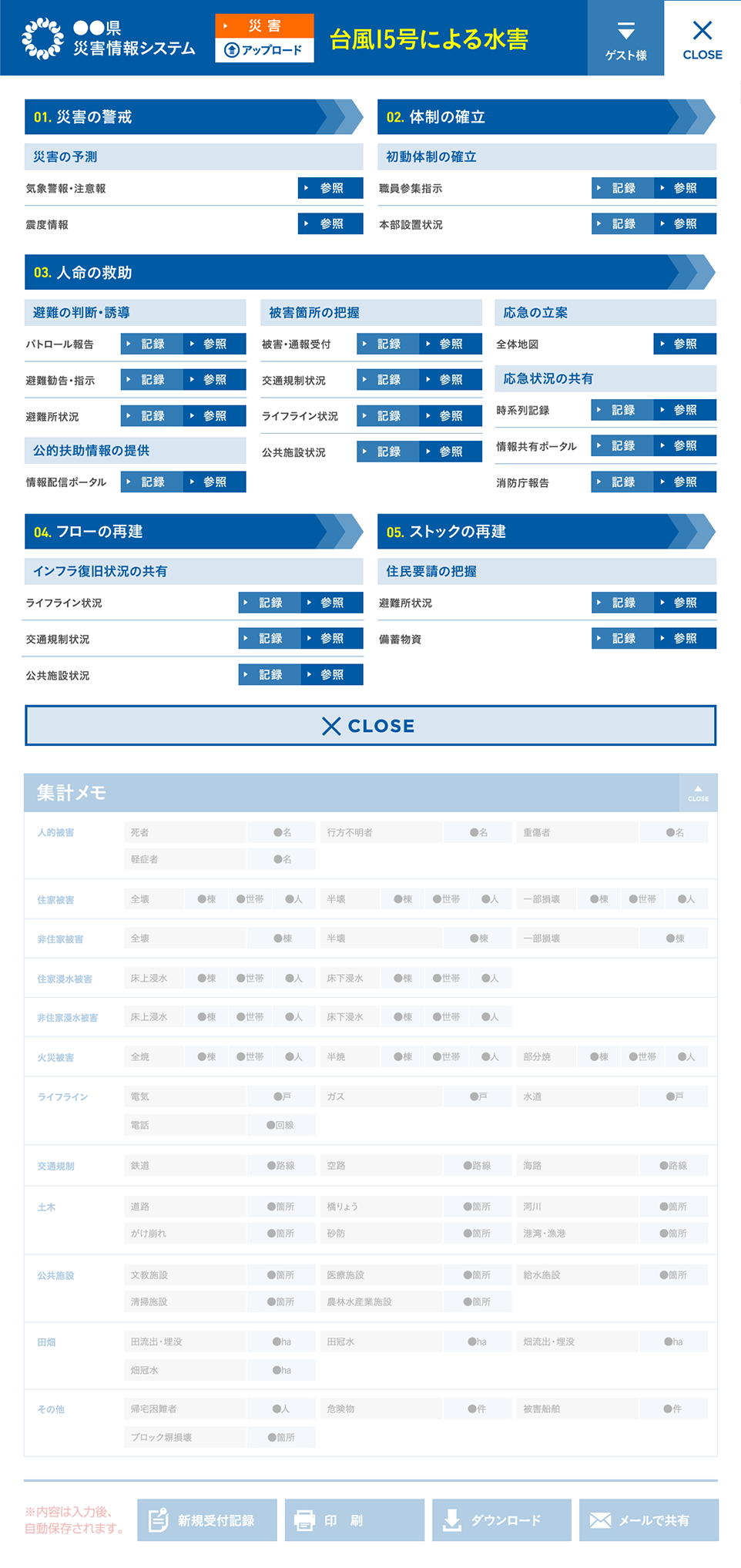 災害時・緊急時に活躍する官公庁向けポータルサイトの構築。(自治体業務用アプリケーション) 利用者を選ばない、機械操作が苦手な方も触りたくなる操作しやすい直感的なUI/UXを設計。