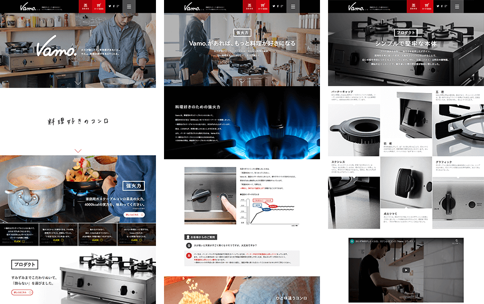 Web限定テーブルコンロ「Vamo.」のブランドサイトを構築。 製品のネーミング、ロゴ開発からイメージ撮影、サイト構築まで一貫して担当。