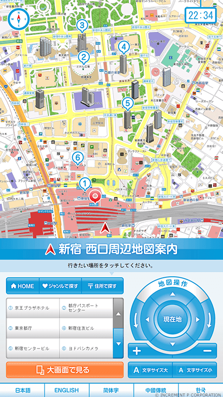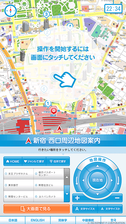 新宿駅西口に設置されているタッチパネル式地図のUI/UXを設計。