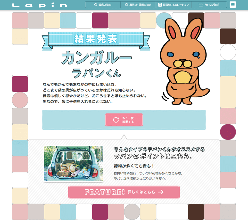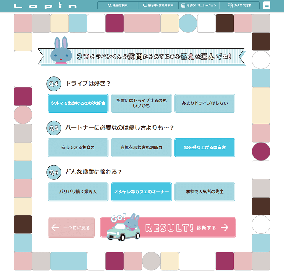 ユーザーが楽しめるゲーム系コンテンツなどの企画提案から、車種の魅力と絡めた診断コンテンツのロジック開発、サイトの構築まで実施。