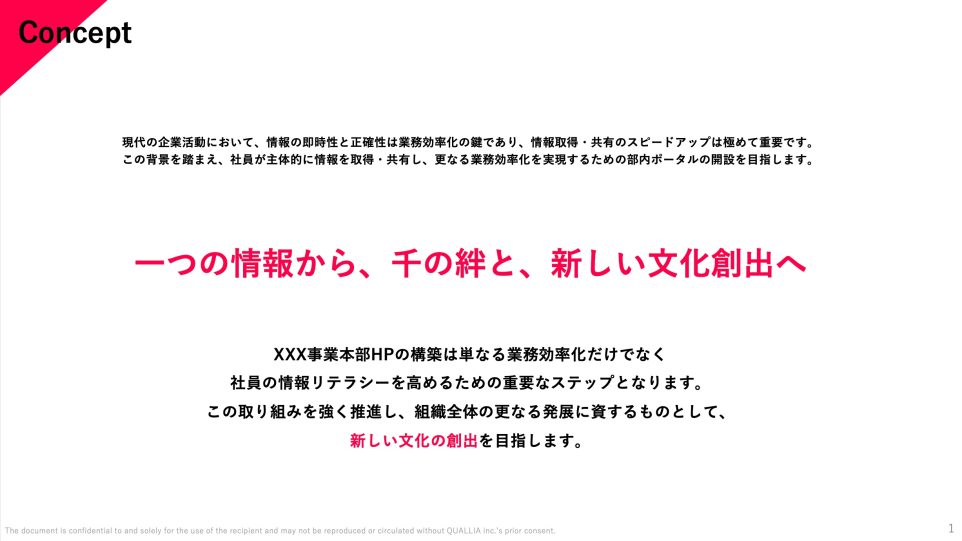 新しい文化創出というコンセプトのもと、業務効率化を超え、社員の情報リテラシー向上のための重要なステップと位置づけ、組織全体の成長をねらい設計。要件分析から始まり、モックアップを活用したテスト環境を設け、実際に触れる体験を提供し、ユーザーフィードバックを経て仕上げた。